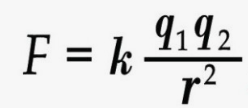 여기서 F는 인력, q1과 q2는 두 입자의 전하, r은 두 입자 사이의 거리입니다. k는 상수.